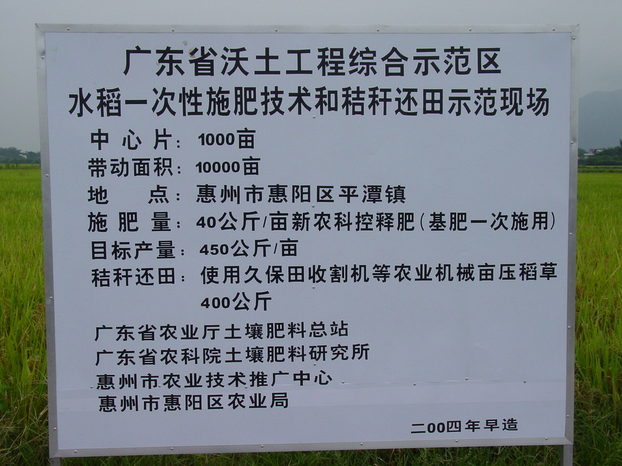 为进一步贯彻落实中央一号文件关于”扩大沃土工程实施规模,不断提高耕地质量。……强化技术集成能力,优先支持推广一批有重大影响的优良品种和先进适用技术“的指示精神,广东省农业厅土壤肥料总站于7月8日在惠州市惠阳区召开全省沃土工程和控释肥料推广现场会议,来自全省各市和有关县(区)的土肥科、站、股长及有关单位共80人参加了会议,省农科院曹俊明副院长、土肥所谢春生所长、省农业厅科教处和广东电视台、农民日报、南方农村报、广东科技报等以及惠州市各有关新闻单位参加了会议。会议参观了广东省沃土工程综合示范区———惠阳区连片1000亩使用稻草还田和控释肥料一次性施肥技术现场,惠阳区农业局等9个单位进行了经验交流,最后由省土肥总站郑惠典站长进行总结。会议指出去年以来我省土壤肥料工作环境出现可喜的实质性转变,回顾我省推广控释肥料一次性施肥技术和秸秆还田技术工作情况,继省农业厅把控释肥料一次性施肥技术列为我省2003年农业科技年活动中推广十项成熟技术中的首项后,又得到了《人民日报》等多家中央新闻媒体的高度关注,各有关市、县召开了21场现场会,2003年全省推广15万亩。惠州市提出从2004年起,用抓抛秧的方法和干劲,花3—5年时间在全市普及推广使用水稻控释肥料,力争使全市控释肥料普及推广率达到50%以上。今年以来,全省投入经费70.57万元,早稻开展示范片达297片,示范面积达8956.7亩,带动的示范推广面积达7.5万亩。工作较好的市有惠州、梅州、阳江、清远等,连平县成为我省推广面积最大的县,新兴县成为今年发展速度最快的县。生产厂家提高了竞争力度,经销商也出现了竞买控释肥料的情况。在秸秆还田方面,各地认真贯彻执行农业部、国家环保局、财政部、铁道部、交通部、民航总局等六部局联合颁布的《秸秆禁烧和综合利用管理办法》,2003年我省秸秆还田面积2321.4万亩,比2002年的2176.1万亩增长6.7%,其中采用机械翻压的有977.2万亩,高留茬567.7万亩,采用覆盖的有776.5万亩。我省稻草的利用已经从单一的稻草直接翻压还田发展到多种形式的稻草间接还田,从单作水稻肥源发展到成为番薯、蔬菜、花生、水果、小麦等农作物的肥源和养畜的饲料,呈现出稻草直接还田和间接还田并举,还田形式从简单到多样化,利用方式做到多渠道、多途径,提高了稻草还田的效益。会议同时指出了工作中存在的问题,并要求全省各级土肥干部认清形势,统一思想,顺势而上,开创我省土壤肥料技术推广工作的新局面;进一步提高思想认识,把推广控释肥料一次性施肥技术和秸秆还田作为农民节本增产增收和农产品质量安全生产的重要措施来抓,特别是在双夏期间要把秸秆还田作为一项政治任务抓好;抓紧抓好落实工作计划,发挥土壤肥料技术的综合增产作用,为夺取晚稻丰收打下基础;大力搞好示范样板或示范片;继续加大宣传力度;加强对控释肥料一次性施肥技术和秸秆还田工作的指导;利用典型引路,加快推广速度,推动控释肥料一次性施肥技术和秸秆还田面积的扩大。会议最后要求各地农业部门继续争取当地党委政府领导的重视和支持,抓紧时机不误农时地做好早稻稻草还田工作和落实今年晚稻控释肥料一次性施肥技术的推广计划,振奋精神,求真务实,开拓创新,与时俱进,为广东省农业生产的发展、南粤大地的丰收和增加农民收入做出贡献。