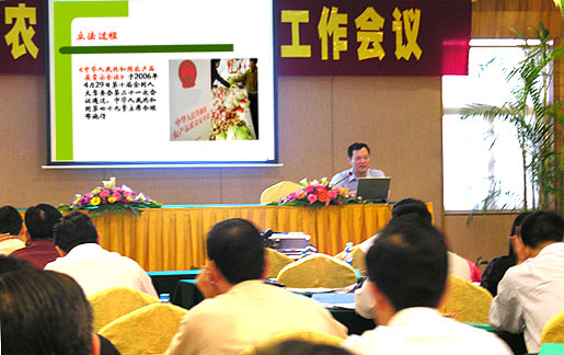 下午,会议对《农产品质量安全法》的立法背景、主要内涵、贯彻要求和有关具体内容进行专题讲座,省农业厅市场与经济信息处邢宗和在会上作《学习贯彻<农产品质量安全法>,确保农产品质量安全》专题演讲。