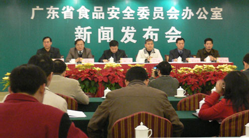 省食品安全委员会办公室在会上发布了广东省2006年食品安全工作的基本情况、消费指引和投诉举报指引;省经贸委、农业厅、工商局、海洋与渔业局、质监局分别发布了应节食品抽检信息及保障春节食品安全的有关监管措施;省卫生厅在会上发布了食品卫生监督工作的有关情况。