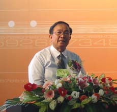 论坛开幕式由农业厅厅长谢悦新(右)主持,省委副书记欧广源(中)、副省长李容根(左)在开幕式上致辞