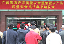 今天(3月5日)上午,广东省农业厅召开农产品质量安全整治暨农产品质量安全执法年活动启动仪式,现场突出检查农资市场。执法人员兵分三路到基层开展农资市场现场执法检查。随后,由省农业厅有关职能部门与省整规办、工商局、海洋与渔业局等有关单位组成的4个联合检查组,兵分三路对肇庆市四会、高要、德庆、三水等地农资市场进行现场执法突出检查。
