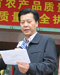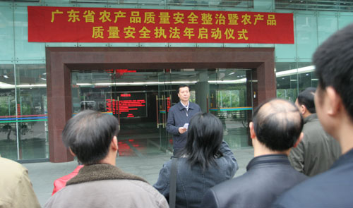 省农业厅副厅长林果先在启动仪式讲话中强调,当前,社会各界对农产品质量安全关注程度、国家对农产品质量安全监管工作重视程度前所未有。党的十七届三中全会、中央农村工作会议都对加强食品安全监管工作提出严格要求。国务院办公室已经印发了《食品安全整顿总体工作方案》,计划用2年左右的时间开展食品安全整顿,其中农产品质量安全整顿是食品安全整顿的重要内容。我省也按国家的要求和部署,迅速部署并制定实施方案,将整治作为农产品质量安全工作的重点,全面启动农产品质量安全整顿工作。突出抓好投入品监管,以饲料及饲料添加剂、农药、兽药和有毒有害物质为重点,深入开展农资打假专项治理行动,严厉打击制售假劣农资违法行为,开展“饲料执法年”、“农药市场监管年”、“兽药专项整治”活动,重点整治违法使用甲胺磷等五种禁用高毒农药,生鲜乳和饲料中非法添加三聚氰胺等有毒有害物质,水产苗种生产和养殖过程中违法使用硝基呋喃类、孔雀石绿等违禁药物行为,从源头上控制禁用药物和有毒有害物质流入农业生产领域,保障农产品质量安全和农民群众的合法权益。