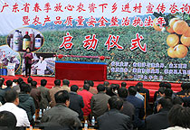 春风引紫气,大地润物华。一年之计在于春,目前正值广大农民朋友开耕备耕的重要时候,一场及时的大雨将南粤大地润了个通透。今天(3月6日)上午,广东省农业厅、省海洋与渔业局、省质监局、省工商局、肇庆市农业局、德庆县人民政府,联合在德庆县官圩镇举办2009年“放心农资下乡进村宣传咨询暨农产品质量安全整治执法年启动仪式”。参加这次活动的有省整规办,省、市、县农业、海洋与渔业、工商、质监等部门的领导、执法人员和专业技术人员,还有30多家农药、肥料、种子、饲料、兽药、农机及零配件的名优企业。潘雪芬副巡视员出席活动并讲话。