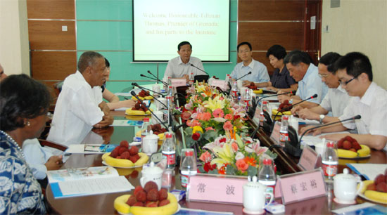 6月20日下午,格林纳达总理Honourable Tillman Thoms一行来到广东省农业机械研究所。广东省农业厅厅长谢悦新、副巡视员潘雪芬、外事外经处处长蔡宏裕,广东省农业机械研究所所长林仰南等接待了总理阁下一行。