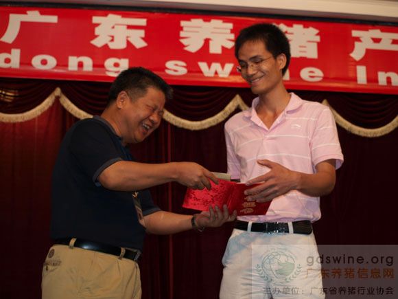 广东省畜牧技术推广总站站长、广东省养猪行业协会会长吴秋豪为“超级神探”一等奖获得者颁奖