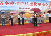 为了更好地推动全省冬种生产发展,广东省农业厅于11月12日在江门新会区召开全省冬种生产机械化现场会。现场会邀请了25家农机生产企业,展示和演示了先进实用,比较适合广东省冬种生产和机械化技术与装备,参加展示和演示的机具有100多台套,涵盖了冬种生产的整地、节水灌溉、植保、中耕和收获等环节;总结交流了广东省各地推广冬种生产机械化的经验与做法,江门市农业局、惠东九华农贸有限公司惠州市农机技术推广站、徐闻县农机局和高州市农业局分别介绍了推广冬种生产机械化的做法和经验。