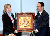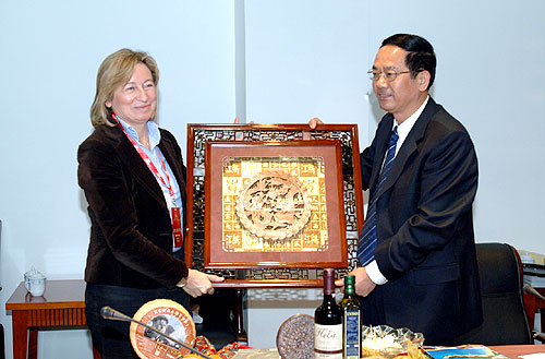 11月13日上午,谢悦新厅长、刘金生巡视员及有关处室、单位负责人在省农业厅会见了前来参加“广东省开展国际友城交往三十周年庆祝活动”的希腊伊拉克利翁州州长艾万赫丽·辛娜拉奇·依丽亚奇一行,双方就广东与希腊伊拉克利翁州加强农业交流与合作,尤其是农产品贸易方面的合作进行了深入的探讨,并达成了重要共识。