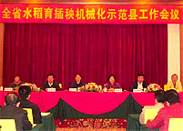 为突破水稻育插秧机械化瓶颈,2009年广东省启动了建设20个水稻育插秧机械化示范县项目。为总结各示范县的项目建设成效,加速推进全省水稻育插秧机械化发展,2010年1月6日,广东省农业厅在廉江市召开全省水稻育插秧机械化示范县工作会议,总结2009年20个水稻育插秧机械化示范县取得的成果和经验。农业厅副巡视员潘雪芬出席会议并对示范县提出期望,“要更加积极发挥示范带动作用,力争2010年每个示范县新增插秧机30台以上,新增机插秧面积5000~10000亩,并带动全省2010年确保新增1500台插秧机,力争新增2000台,完成机插秧面积100~120万亩,机插率力争突破4%。”