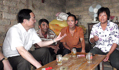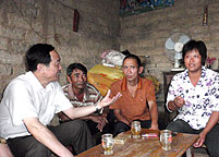 在罗洞村,谢悦新同志一行冒着雨先后来到贫困农户邓钦源、邓剑辉家中,嘘寒问暖,座谈了解他们的生产生活情况,宣传省委、省政府扶贫开发“规划到户,责任到人”的惠民政策,鼓励他们主动积极投身到省农业厅帮扶的扶贫开发项目中,争取早日脱贫致富,并送上了慰问金。谢悦新同志一行冒着雨考察了农业厅扶持的罗洞村茶叶种植基地等项目,同当地(市、县、镇)领导、驻村干部、罗洞村两委干部和19个村民小组长进行了座谈,听取了农业厅驻村工作组关于帮扶罗洞村工作的汇报,听取了当地干部群众的意见建议,一起研究了如何加大帮扶力度、加快工作进度、调整帮扶项目、提高帮扶效果,帮扶罗洞村群众和村集体经济实现脱贫致富的大计。晚上,省农业厅调研组同当地党政领导和有关部门负责同志继续召开座谈会,进一步研究细化了落实帮扶工作的具体意见。