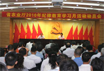 会上,谢悦新厅长就农业厅开展纪律教育学习月活动提出四点要求:一要努力提高思想认识,切实端正学习态度。要求克服“三种情绪”、强化“三种意识”,即克服厌烦情绪,强化自觉意识;克服畏难情绪,强化忧患意识;克服与己无关情绪,强化责任意识。二要紧密联系工作实际,认真做好对照检查。要正确处理服务“三农”与廉洁行政的关系,做到情为民所系、权为民所用、利为民所谋;要正确处理遵纪守法与严格自律的关系,要求在大是大非的问题面前管好自己的脑、管好自己的嘴、管好自己的手,增强遵纪守法的自觉意识;要正确处理党的利益与个人利益的关系,明确全心全意为人民服务的宗旨;要正确处理组织监督与民主监督的关系,进一步增强监督意识,创新监督举措,扩宽监督渠道,提高监督效益。三要创新反腐倡廉举措,建立廉政长效机制。指出反腐倡廉制度建设是惩治和预防腐败体系建设的重要内容,是加强反腐倡廉建设的紧迫任务,要求从教育制度建设、监督制度建设、预防制度建设三方面建立健全廉政长效机制。四要认真抓好组织实施,确保教育学习效果。要求加强组织领导,确保活动落实;抓好典型教育,做好对照检查;认真查找问题,广泛开展批评。