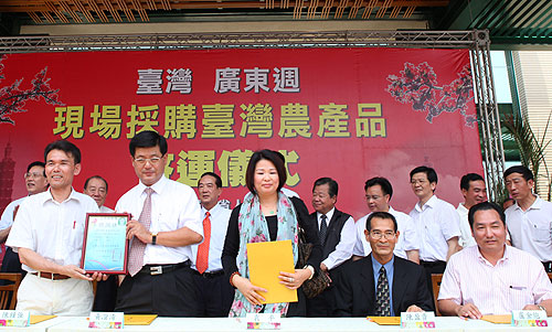 8月20日上午,广东省政府在台南县走马濑农场举行“台湾农产品现场采购签约及启运仪式”,广东企业现场采购了8个货柜农产品,货值30多万美元。谢悦新厅长主持了仪式。 >>详情
