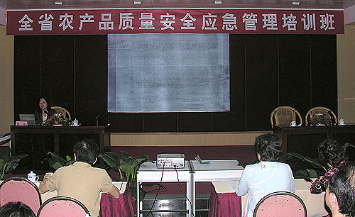 在开班仪式上,程萍副厅长强调,各地级以上市农业局要明确职责,狠抓落实,突出抓好“瘦肉精”专项整治工作,一手抓当前专项整治和日常监管,一手抓监管能力和长效机制建设,全面提高农产品质量安全水平。潘雪芬副巡视员主持并全程参加了学习研讨。培训班组织了农产品质量安全信息管理、农产品质量安全应急管理学习,并对深圳世界大学生运动会农产品质量安全保障工作进行了研究部署。