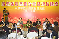 8月11日下午,广东省举办农业推介会暨招待晚宴,省政府副秘书长颜学亮出席推介会并致辞,省农业厅厅长、省委农办主任谢悦新出席晚宴并推介广东农业情况。颜学亮副秘书长表示,近年来,广东省紧紧围绕建设现代农业强省的目标,加快推动农业科技化、集约化、产业化,大力加强农产品质量安全监管体系建设,在全国率先建立农产品质量安全监测体系,全面加强农产品质量安全监督和例行检测,全省农业产值、主要农产品产量、农产品出口额、农民收入等指标稳居全国前列,农产品质量保持安全稳定。