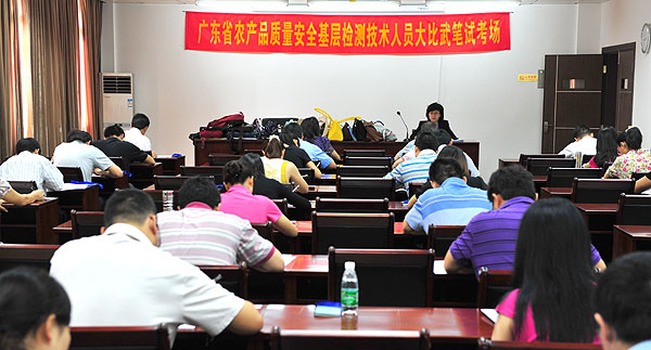 广东省农产品质量安全检测技术人员大比武笔试现场。