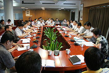 谢悦新厅长主持召开会议,程萍副厅长通报前期工作情况。
