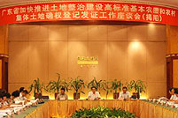 为加快推进土地整治,大规模建设高标准基本农田和推进农村集体土地确权登记发证工作,广东省政府先后于2012年8月9日、10日、13日在全省分5个片区召开加快推进土地整治、建设高标准基本农田和农村集体土地确权登记发证工作座谈会。各地级以上市及顺德区副市长、各县(市、区)政府主要负责人,国土资源局、财政局、农业局主要负责人参加会议。