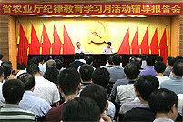 省农业厅党组成员、纪检组组长王力伟主持了会议,他要求全厅党员干部围绕今年纪律教育学习月活动主题,深刻学习领会曾常委的重要讲话精神,以学习新成效促进全省“三农”工作科学和健康发展。