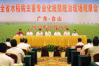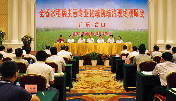 10月26日,广东省农业厅在台山市召开全省水稻病虫害专业化统防统治现场观摩会,传达全国水稻病虫害防控现场会精神,总结交流专业化统防统治工作成效和经验,研究部署下一步工作。会议由陆国煌总农艺师主持,蔡汉雄副厅长出席会议并作重要讲话。
