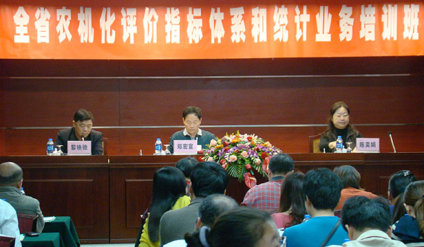 为贯彻落实全面农业机械化水平评价指标体系试行启动部署会议的精神,广东省农业厅农机化管理办公室近日在广州举办全省农机化评价指标体系和统计业务培训班,来自全省各市 、县(区)的150多名农机统计人员参加了培训。省农业厅农机化办郑宏宣主任在开班仪式上作讲话,黎映驰副主任全程参加培训活动。