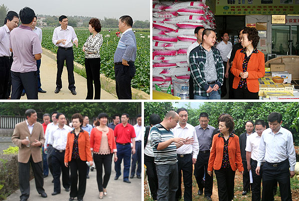 在河源考察期间,程萍副厅长一行从广州出发迳往河源市的县、镇进行考察。先后考察了浦前镇蔬菜生产基地,饲料加工企业,龙川县通衢镇种猪养殖、龙川县县、镇农技推广工作、专业秧苗种植场、金针菇种植专业合作社、县农科所等,在龙川县鹤市镇实地督导春耕生产工作,在基层一线,召开了两场座谈会。