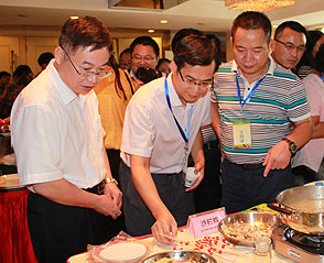 此次农产品展馆布置别致,产品种类众多、介绍明细,现场举行的烹饪、试吃环节,更是让人在一饱口福中真真切切感受到了广东名牌农产品的“色香味”。“潮兴”沙栏鸡、“绿之选”菜心、“珍香”优质丝苗米、“顺明”鸡蛋和“生生鱼”等近60种名特优农产品一期亮相,着重体现出创建名牌追求众乐乐的和谐。