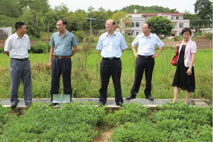 蔡汉雄副厅长一行顶着炎炎烈日深入田间地头实地考察了花生品比试验田、南瓜新品种种植区和蓝莓生产基地,详细了解石岗村农业发展基本情况以及对扶贫产业发展的想法和建议,指出一定要确定好主导产业,有了主导产业做支撑,才能促进农民增收。