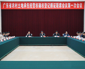 2014年11月10日,省农村土地承包经营权确权登记颁证联席会议第一次会议在广州召开。省委马兴瑞副书记出席会议并讲话,省政府邓海光副省长主持会议,省委魏建飞副秘书长、省政府颜学亮副秘书长,以及省委组织部、省委宣传部、省委农办、省财政厅、省国土资源厅、省农业厅、省林业厅、省海洋渔业局、省法制办、省信访局、省档案局、省妇联等部门有关负责同志参加了会议。会议听取了省农业厅郑伟仪厅长关于全省农村土地承包经营权确权登记颁证试点工作进展情况汇报,分析了当前工作面临的突出问题,研究部署了下一步工作,会议还研究讨论了省联席会议办公室提交的《广东省农村土地承包经营权确权登记颁证联席会议制度》和《关于解决农户承包地细碎问题的指导意见》。