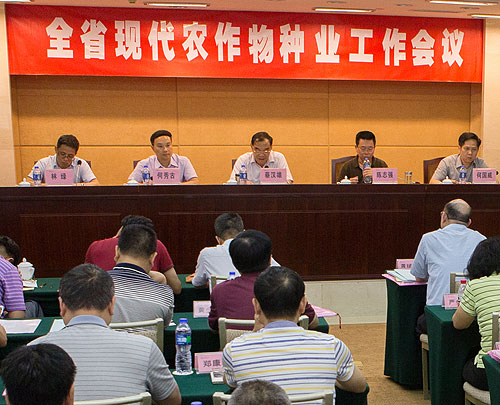 省农业厅蔡汉雄副厅长出席会议并作讲话。蔡汉雄副厅长全面总结了近年来广东省推进现代种业发展的成功做法和经验,深入分析了当前广东省种业发展面临的机遇和挑战,并要求下一阶段着力抓好以下几方面工作:一是着力推进现代种业发展,二是着力抓好种业科技创新,三是着力培育壮大种业主体,四是着力强化种子市场监管,五是着力加强项目管理,六是着力抓好种业成果的转化应用,七是着力抓好种子管理体系建设。