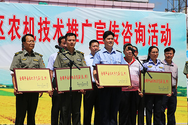 活动中,还分别为我省获得2014年全国“平安农机”示范县(区)的广州市从化区、珠海市金湾区、兴宁市和龙门县颁发了牌匾,为获得农机安全监理“示范岗位标兵”的个人颁发了证书。
