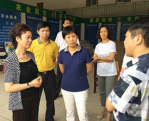7月14日,广东省农业厅副厅长程萍带队赴梅州市梅县区调研信息进村入户情况,先后考察了梅州市梅龙农资有限公司的“农业服务超市”和梅州市木子金柚专业合作社信息化及农产品电子商务建设。省农业厅市场与经济信息处程文章处长及梅州市农业局相关领导陪同调研。
