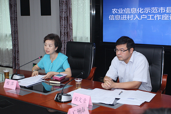 程萍副厅长就省农业信息化示范市县和信息进村入户的推进工作进行统一部署,充分强调了信息进村入户工作的重要性,并提出四点工作要求,一是高度重视,制定计划,各单位要制定出各自具体化、有针对性的实施方案;二是创新理念,打造亮点,各地要结合经济发展条件和农业特色推进建设;三是加强合作,形成合力,促进政府与企业之间、企业与企业之间的合作;四是强化落实实施责任,切实做好信息进村入户工作。