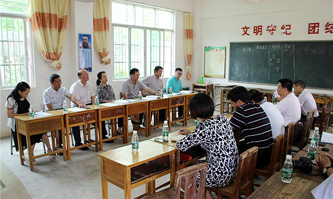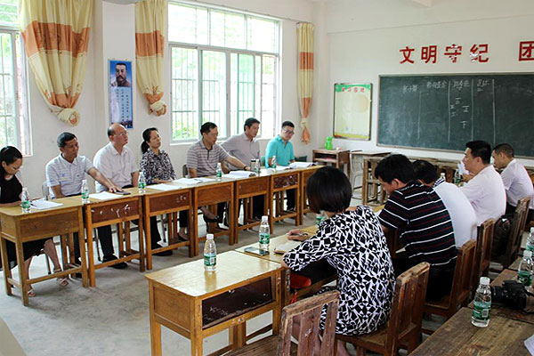 随后余俭娥巡视员一行在石岗小学与镇、村干部及驻村工作组进行座谈。驻村工作组长和村支部书记分别汇报了两年多来石岗村的扶贫工作进展情况,分管扶贫工作的镇委副书记、市县两级扶贫办相关负责人高度肯定了省农业厅对石岗村帮扶工作的成果。最后,余俭娥对座谈进行总结性发言,她指出,驻村工作组两年多来的工作严格按照扶贫工作三年规划来执行,成效显著,要求做好省级考核准备工作,成立迎接考核准备小组,做好考核现场和材料准备,突出重点和亮点,加大宣传力度。