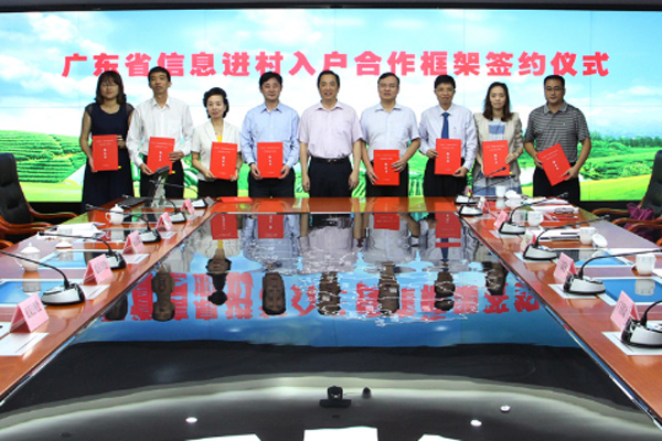 会上,省农业厅程萍副厅长与中国移动广东分公司、中国电信广东分公司、中国联通广东分公司、广州银联网络支付有限公司、深圳市诺普信农化股份有限公司、阿里巴巴(中国)软件有限公司、苏宁云商集团股份有限公司的代表签署信息进村入户合作框架协议,合力推进广东信息进村入户工作。
