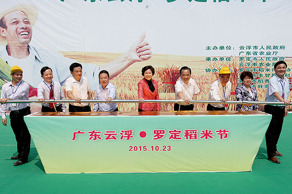 省农业厅,省质监局,云浮市委、市政府,仲恺农业工程学院负责人,各地市农业局负责人,云浮各县(区)政府负责人,省及港澳稻米经销客商代表,省种粮企业或大户代表等共1000多人参加活动。与会人员现场参观了罗定亚灿米有机系列研发中心、罗定市稻香园农业发展有限公司、罗定市旺家农业有限公司产品展示馆。开幕式上还举行了罗定稻米地标产品专用标志授牌仪式。