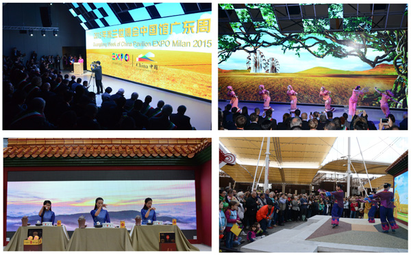 10月15日-19日,2015年意大利米兰世博会“广东活动周”在意大利米兰顺利进行。本届世博会主题为“滋养地球,生命的能源”,旨在探寻为全球提供充足、有品质、健康和可持续发展的食品保障,寻找合理利用资源、保护环境、滋养人类、反哺地球的有效途径,在人类与自然中找到发展的平衡点。中国以4590平方米自建馆形式组建中国馆,以“希望的田野,生命的源泉”为主题参展。广东活动周是中国馆18个省区市活动周(日)活动的最后一个,为中国馆在米兰世博会上的表现做了一个圆满的谢幕。