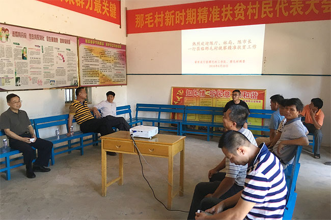 陈正辉同志指出,雷州是世行环境友好型种植业示范县,做好世行项目对完成那毛村精准扶贫任务具有积极的推进作用。首先,项目对村民购买配方肥、生物农药、高效低毒农药、高效电动喷雾器、水肥一体设备、太阳能杀虫灯等进行补贴,可有效提高农民收入;其次,项目减少农业面源污染,实行农药包装废弃物统一回收和再利用,可改善村容村貌,提高农产品质量安全水平,打造那毛农业品牌;再次,项目大力培训农户,对提高农民综合素质,从根本上脱贫致富意义深远。