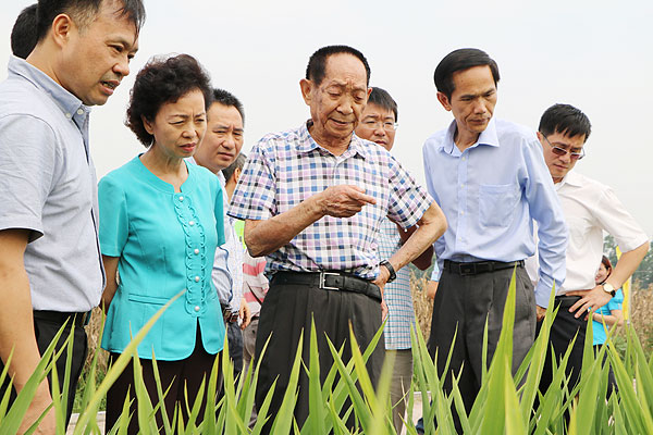 7月7日,袁隆平院士带领他的科研团队赴江门新会,在广东天之源种业示范种植基地的一线超级杂交稻试验田,考察了当地试种推广的超优1000表现情况,开展超级稻新品种南方试验示范基地选点论证,并在基地举行了种业战略合作座谈会。程萍副厅长陪同调研并在座谈会上致辞。