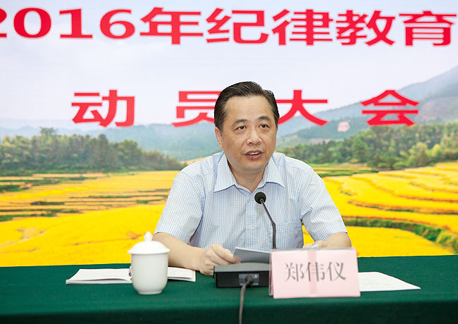 郑伟仪同志围绕“学党章强党性、讲规矩守纪律”主题,从加强党性锻炼修养,做政治坚定的明白人;严守党章党规党纪,做敬畏戒尺的守护人;培养严实优良作风,做干事创业的担当人;坚持严格自省自律,做廉洁从政的干净人;认真履行廉政责任,做从严治党的带头人等五个方面作专题辅导报告,并要求全厅各级党组织和领导干部切实落实全面从严治党的要求,落实党风廉政建设主体责任,结合“两学一做”学习教育,认真组织开展纪律教育学习月活动,把握运用好监督执纪“四种形态”,确保纪律教育活动取得实实在在的成效。