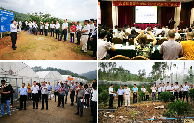 会议代表参观了龙门县柑橘无病毒苗圃繁育基地和柑橘黄龙病综合治理示范区,观摩了永汉片区柑橘木虱统防统治现场,农业部柑橘黄龙病岗位科学家、华南农业大学邓晓玲教授作了柑橘黄龙病专题讲座,龙门县、梅县区和罗定市植保植检机构负责人作了典型发言。广东省植保植检总站陈喜劳站长在会上总结了近一年来推进柑橘黄龙病防控补助试点工作的主要举措和取得的成效,分析了当前柑橘黄龙病的发生防控形势,并对下一步柑橘黄龙病防控工作进行了部署。广东省农业厅种植业管理处曾思坚处长对项目区柑橘黄龙病防控补助试点工作给予充分肯定,并要求各柑橘产区农业植保部门认清黄龙病发生防控形势,进一步增强工作责任感和紧迫感,切实将各项政策落实到位、防控措施落实到田,为柑橘产业持续健康发展、促进农民增收和农业农村经济发展作出新贡献。