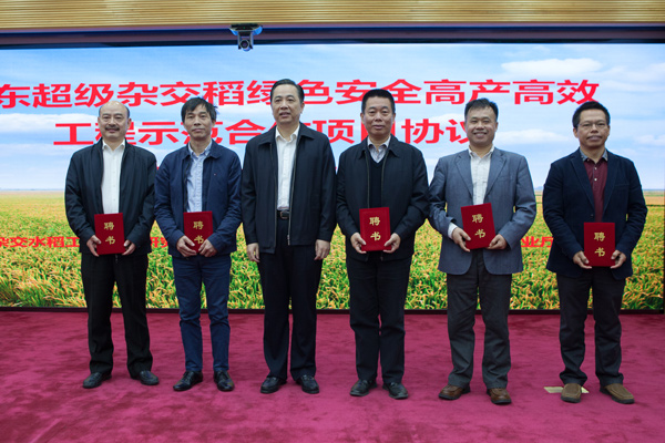 根据协议,双方通过实施“广东超级杂交稻绿色安全高产高效示范工程合作项目”,共同推进农科教、产学研协同创新机制,加快提升合作区域超级杂交稻生产水平与种植面积,推广经农业部确认的超级稻品种,努力实现超级稻大面积“绿色安全高产高效”目标。同时开展双季超级杂交稻每公顷22.5吨的高产攻关。国家杂交水稻工程技术研究中心每年提供2-3个左右超级杂交稻苗头组合参加广东省区试,并参加项目试验、示范。另外,将双方第一阶段合作研究成果--国家杂交水稻工程技术研究中心培育的抗稻瘟病新品种—Y两优143和Y两优305作为合作项目主推品种在广东适宜的生态区域大面积推广。