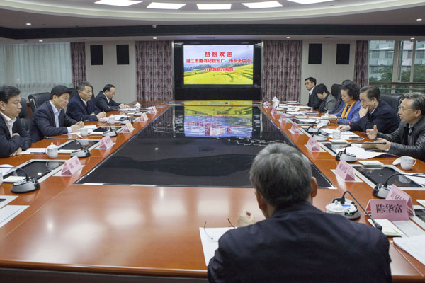 为贯彻落实省委经济工作会议和省“两会”精神,近日,湛江市委书记魏宏广、市长王中丙一行到省农业厅与郑伟仪厅长及班子成员、相关处室单位主要负责人进行座谈交流。双方就落实雷州半岛现代农业发展规划,加快推进现代农业建设等相关工作交换了意见,达成了共识。