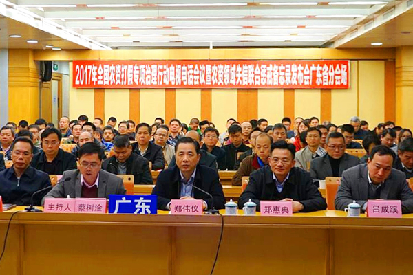 2017年2月27日,农业部会同最高人民法院、最高人民检察院、工业和信息化部、公安部、工商总局、质检总局、供销总社和国家发展改革委召开全国农资打假专项治理行动电视电话会议暨农资领域失信联合惩戒备忘录发布会。会后,广东省立即召开电视电话会议,部署全省农资打假工作,组织开展农资打假促春耕执法利剑行动。省农业厅厅长郑伟仪同志在会上作工作部署,强调要认真贯彻落实全国会议精神,齐心合力抓好今年农资打假和监管工作。