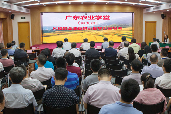 6月19日上午,广东省农业厅举办“广东农业学堂”第九讲,专题进行《网络安全法》宣贯和信息安全培训,厅机关全体公务员、事业单位工作人员参加了会议。