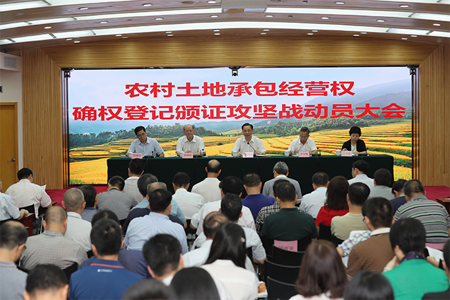 6月28日,省农业厅召开农村土地确权攻坚战动员大会,贯彻落实省委省政府的决策部署,对全省农村土地确权工作进行再动员、再部署、再推进。厅党组书记、厅长、省确权办主任郑伟仪出席会议并作动员讲话。各地级以上市(顺德区)农业局主要负责同志,厅机关全体公务员、厅属事业单位班子成员参加会议。
