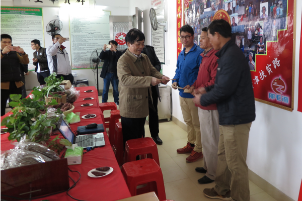 蓝志文同志一行先是走进贫困户家里,关心贫困户的工作生活,听取驻村工作队的工作汇报。蓝志文同志转达了厅党组对那毛村以及驻村工作队的关怀,肯定了那毛村的产业发展成效,要求那毛村党员干部以及更多群众,共同参与到推进那毛村“一村一品”的发展中来,同心协力把那毛村建成新农村建设示范村。最后,蓝志文同志为那毛村送上图书一批。