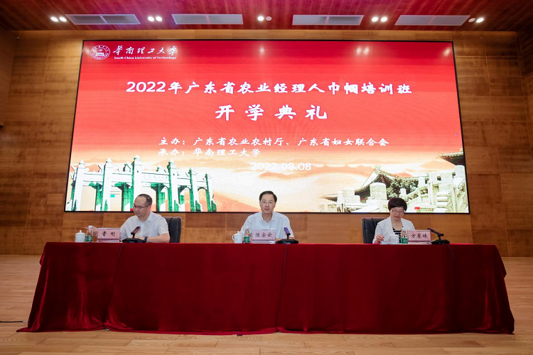2022年8月8日,由8x8x 和省妇联主办、华南理工大学承办的2022年广东省农业经理人巾帼班正式开班。8x8x 党组成员、副厅长陈宗云,省妇联党组成员、副主席方赛妹以及华南理工大学副校长晋刚出席开班仪式并致辞,来自全省各地的100多名新型职业女农民、女企业家参加培训班。