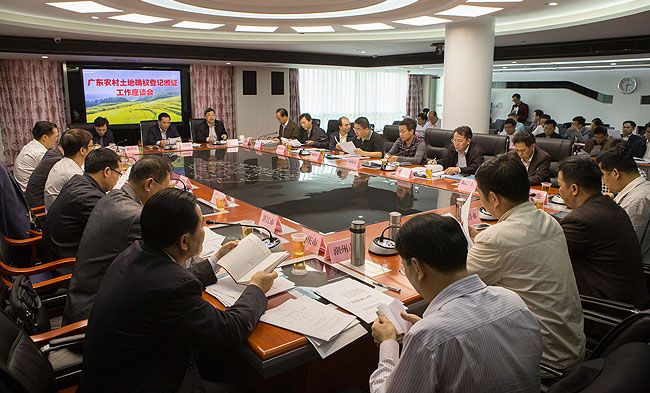 4月13日下午,广东省农业厅郑伟仪厅长主持召开农村土地承包经营权确权登记颁证工作座谈会,传达学习中央和省有关文件精神,听取各地确权登记颁证工作进展情况汇报,研究谋划下一阶段确权登记颁证工作。各地级以上市(顺德区)农业局局长及经管科(处)室负责同志、有关厅领导及相关业务处室负责同志参加了会议。