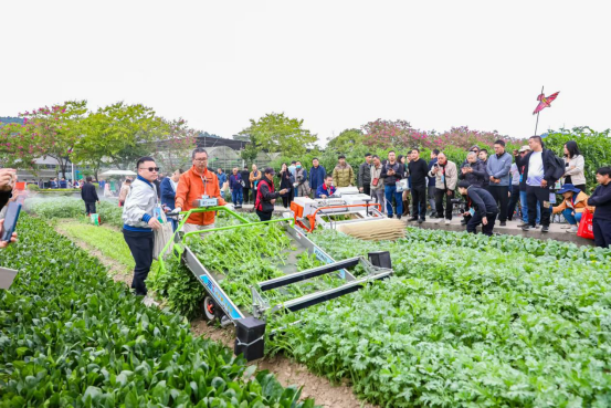 机收蔬菜吸引大量人员驻足观看。